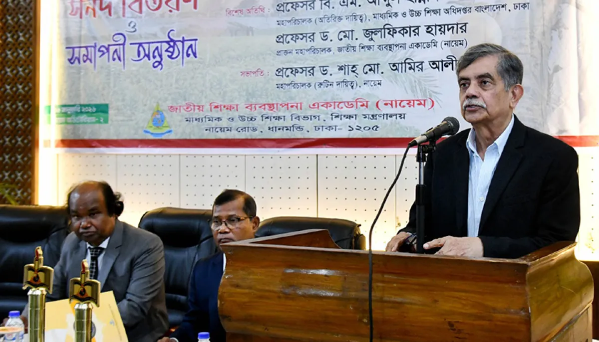 মঙ্গলবার (৬ জানুয়ারি) জাতীয় শিক্ষা ব্যবস্থাপনা একাডেমির (নায়েম) ২০৬তম বুনিয়াদি প্রশিক্ষণ কোর্সের সমাপনী ও সনদ বিতরণ অনুষ্ঠানে প্রধান অতিথির বক্তব্যে তিনি এসব কথা বলেন।